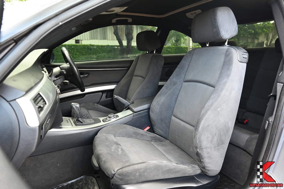 ล้อแม็ก Vorsteiner (High Performance Wheels)ล้อแบรนด์ระดับโลกจาก USA ที่โดดเด่นเรื่องน้ำหนักเบาและความแข็งแรง ช่วยลดน้ำหนักใต้สปริง (Unsprung Weight) ทำให้รถออกตัวดีขึ้น เกาะถนนดีขึ้น และที่สำคัญคือดีไซน์ที่สวยดุ เข้ากับรถ BMW มากที่สุดแบรนด์หนึ่ง ท่อไอเสีย Eisenmann (German Engineering)นี่คือ "ท่อไอเสียที่ดีที่สุด" สำหรับ BMW ผลิตจากเยอรมนี ให้เสียงเครื่องยนต์ 6 สูบ N52 ที่ทุ้ม นุ่ม และแผดหวานในรอบสูง โดยไม่ดังรบกวนในห้องโดยสารมากเกินไป เป็นของแต่งที่นักเล่น BMW ถวิลหา ฝากระโปรงหน้า M3 Style (Vented Hood)ฝากระโปรงที่มีช่องระบายความร้อนแบบ M3 ช่วยระบายความร้อนในห้องเครื่องได้จริง และเสริมลุคให้หน้ารถดูดุดัน เกรี้ยวกราด เหมือนรถสมรรถนะสูง ภายในเบาะ Alcantara (Sport Interior)เปลี่ยนจากเบาะหนังธรรมดาเป็นวัสดุ Alcantara (หนังกลับสังเคราะห์) ซึ่งให้ความรู้สึกสปอร์ต กระชับตัวไม่ลื่นไถลเวลาเข้าโค้ง และไม่สะสมความร้อนเมื่อจอดตากแดด พื้นที่เก็บสัมภาระด้านท้าย (440 ลิตร)การใช้งาน: ถึงจะเป็นรถสปอร์ตคูเป้ แต่ E92 มีกระโปรงท้ายที่ลึกและกว้างพอสมควร สามารถใส่ถุงกอล์ฟวางขวางได้ หรือกระเป๋าเดินทางขนาดใหญ่ 2 ใบ เบาะหลังพับได้เพื่อเพิ่มพื้นที่วางของยาว